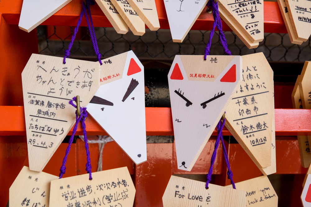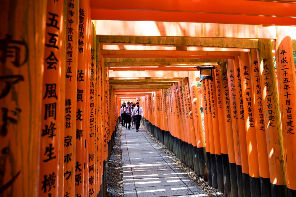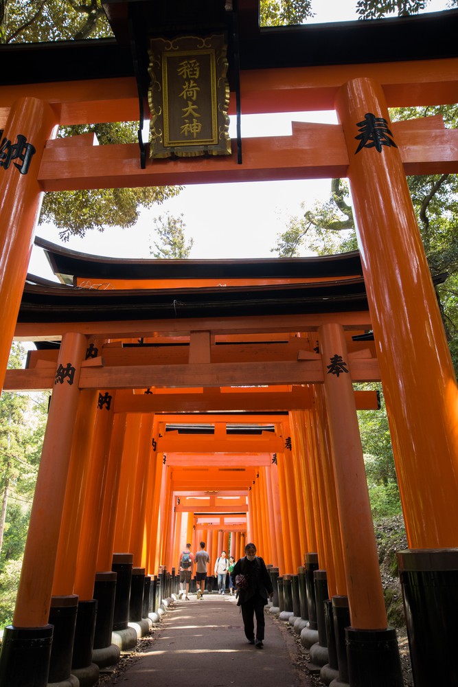 Sur une surface impressionnante, temples, toriis et petits hôtels de prière s’étendent en effet vers les hauteurs. On dénombre sur le site plus de 10 000 portes de cette teinte rouge gravées d’une encre sombre à l’arrière. De prime abord, on trouve ces grandes structures plutôt jolies et spirituelles mais la vérité est plus étonnante. En réalité ces toriis sont offerts par des entreprises en quête de réussite à Inari, divinité protectrice des moissons et patronnes des commerces. Derrière chacun d’eux, sont donc indiqués le nom du donateur et la date de l’offrande… ou de la publicité !