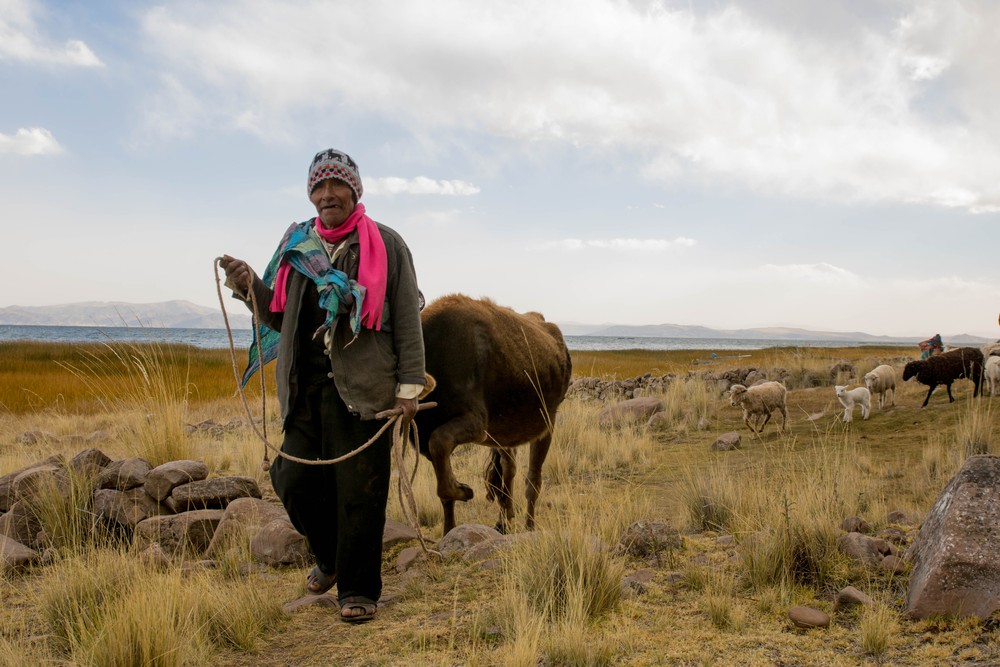 La journée devait se poursuivre paisiblement vers les îles Taquile… le temps en aura décidé autrement. Si le soleil est toujours au beau fixe, le lac, lui, s’agite. Il s’agite même beaucoup. De grosses vagues font tanguer le petit bateau et, à l’intérieur, les premiers passagers déchantent. Un plan B s’improvise et nous filons vers la presqu’île de Llachon, toujours ballotés par les flots. Heureux de poser le pied sur la terre ferme, nous débarquons donc accueillis dans une longue bâtisse meublée d’imposantes tables colorées rapidement remplies de soupes fumantes.