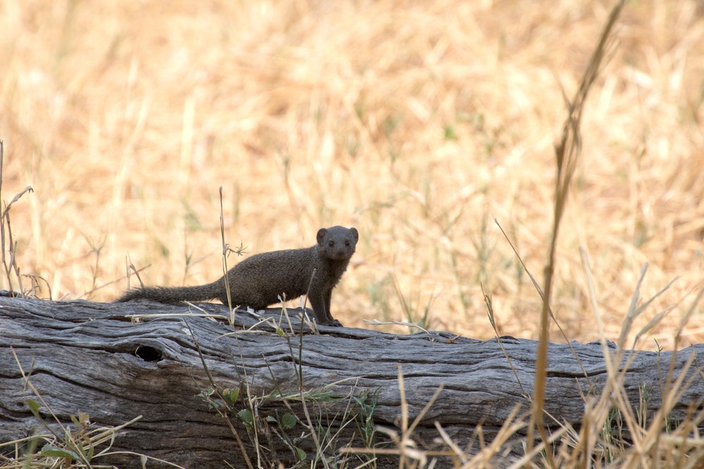 La mangue rayée (Mungos mungo) est une petite bête spécialiste de la chasse au serpent. Elle les attrape d’un geste vif juste derrière la tête.