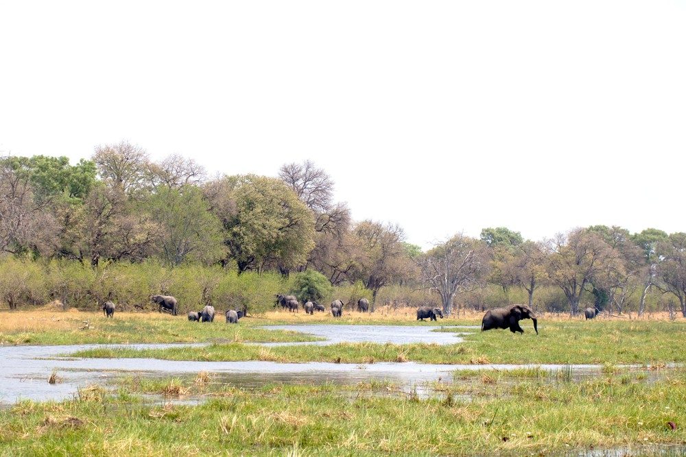 Nos sandwichs avalés, on rejoint la plaine pour y découvrir une faune grouillante comme on n’en avait encore jamais vu. Partout où l’on pose le regard, des silhouettes d’éléphants se dessinent sur la verdure ou se détachent d’un ciel brumeux. On y croise également des troupeaux d’antilopes, savourant un buffet vert qui s’étend à perte de vue. On tombe même sur quelques éléphants qui nagent dans un bras de la rivière, laissant juste apparaitre le haut de leur dos et leur trompe, brandie comme un tuba !