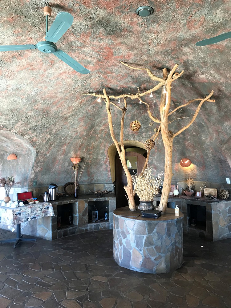 Nous voilà partis pour vivre nos dernières heures en Namibie dans un décor bien différent de nos premiers jours dans le désert. Niché au bord du fleuve, notre lodge du jour est un dépaysement total. On le trouve au bout d’une piste de 5km dans le sable, perdu au milieu des arbres, posé sur de l’herbe verte ! Le Ngepi est un lieu atypique à l’ambiance un peu hippie. On y trouve plusieurs espaces communs, tous grand ouvert sur l’extérieur. Au bar, des drapeaux, chapeaux et billets du monde entier recouvrent les murs. Des feux de camps sont installés tout autour ainsi que des terrasses donnant sur l’eau. Certaines sont pleines de tapis, poufs et hamacs. On explore les lieux sous les arbres agités par des oiseaux colorés. Au loin, les hippopotames grondent. On ne les voit pas encore mais on devine leur présence. Au bout d’un petit chemin, on trouve carrément une piscine – comprendre un cube de grillage installé dans le fleuve – qui permet au plus courageux de se baigner en compagnie de charmantes bestioles. Sans trop de surprises, on passe notre tour !