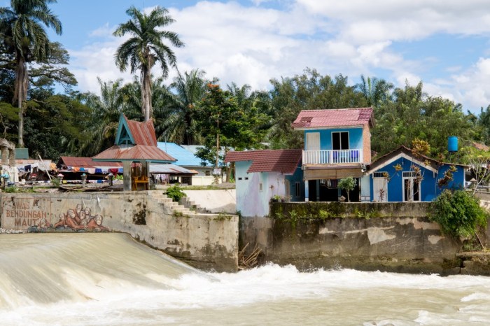 A mesure que l’on s’enfonce dans les terres, le décor change. Les villes se font plus petites, les maisons plus espacées, les abords plus verts. Et, malheureusement, la verdure vient d’abord des palmiers à huile dont la quantité nous frappe assez vite. Pour la petite histoire, ces palmiers n’ont rien d’endémiques. Originaires du Brésil, ils ont été implantés dans le jardin botanique de Java où ils ont semblé se plaire. Le filon était trouvé. Compte tenu des larges espaces boisés de Sumatra et Bornéo, le gouvernement a choisi de faire d’une pierre deux coups : donner un coup de boost à l’économie en rasant ces grands espaces naturels pour y faire de la production à grande échelle et envoyer un surplus de population de Java vers des îles moins occupées, désormais chargée de la culture des palmiers.