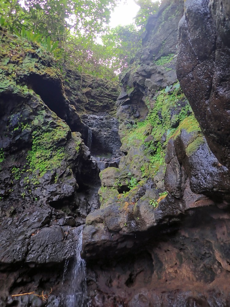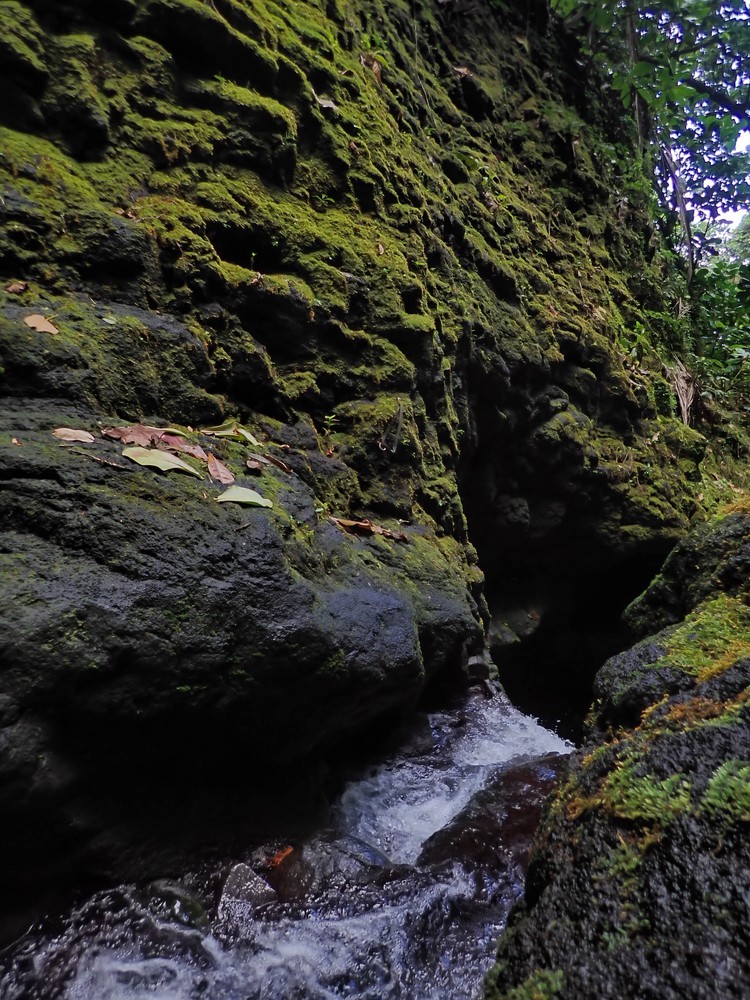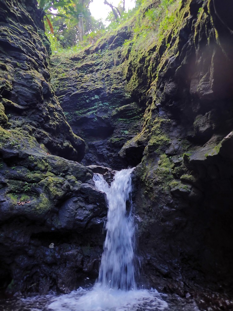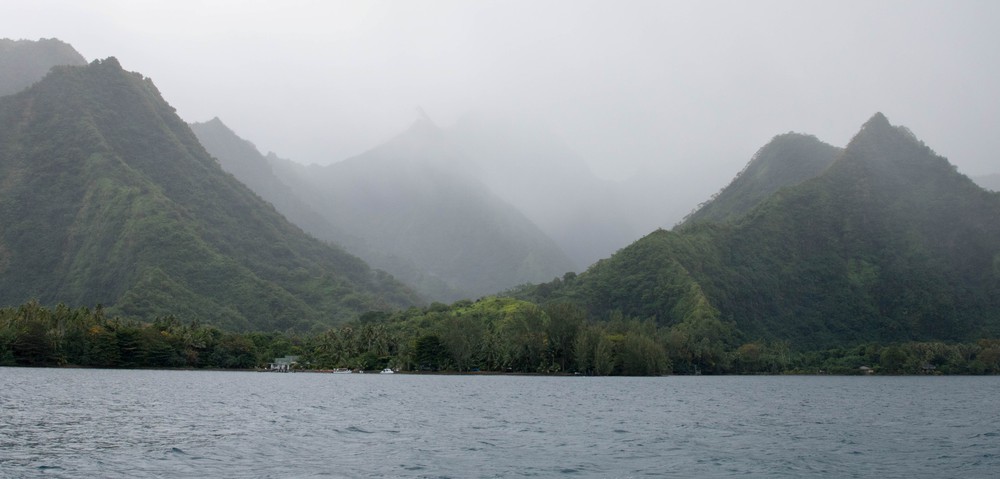 A peine remis de cette jolie surprise, on repart vers le Nord de d’île pour tenter notre chance près du départ de la randonnée du Mont Popoti, entre la pointe et le Fare Ta’oto. Il faut chercher longuement dans les eaux troubles. Il faut chercher longtemps mais elle apparait. Notre première raie manta est là, volant dans le lagon, impassible. Comme elle est belle dans sa cape noire, agitant les nageoires dans un mouvement lent. Si le gabarit de celle ci est loin de rentrer dans les annales, Il suffit largement à nous impressionner. Bien qu’elle ne présente aucun danger, cette magnifique raie manta et ses 2.5 mètres d’envergure nous font quand même marquer un petit temps d’arrêt quand on réalise brusquement comme nous sommes petits à ses côtés. Un moment unique, mélange de joie, d’appréhension, d’admiration… morceau de rêve dans le bleu polynésien.