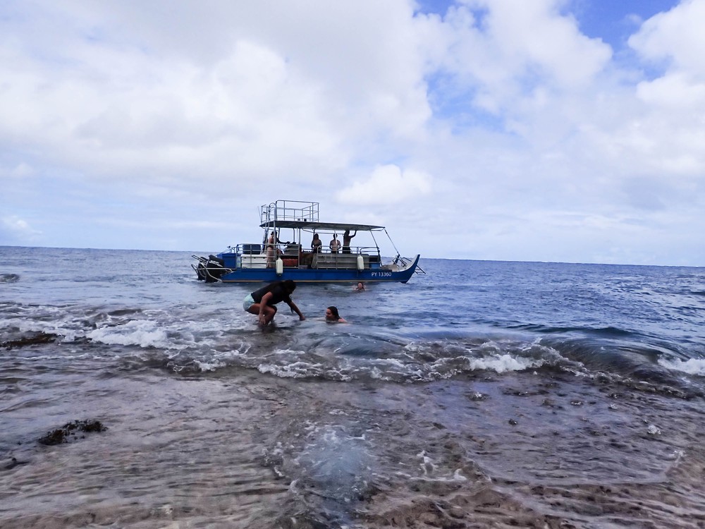 Pour bien conclure ce récit de voyage, quoi de mieux qu’un dernier tour sur le lagon ? Ce matin là, c’est Captain’Mo qui vient nous chercher directement sur la plage de Matira pour notre balade privée sur son bateau. Armés de masques et tuba, de glacières, de canne à pêche et de monoï, on file sur les eaux désertes du lagon vers le Conrad, hôtel mythique symbole de luxe et de rêve. On comprend vite pourquoi quand on longe le motu, son décor de carte postale et ses bungalows incroyables.