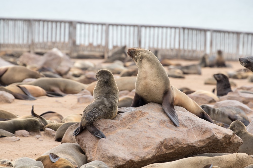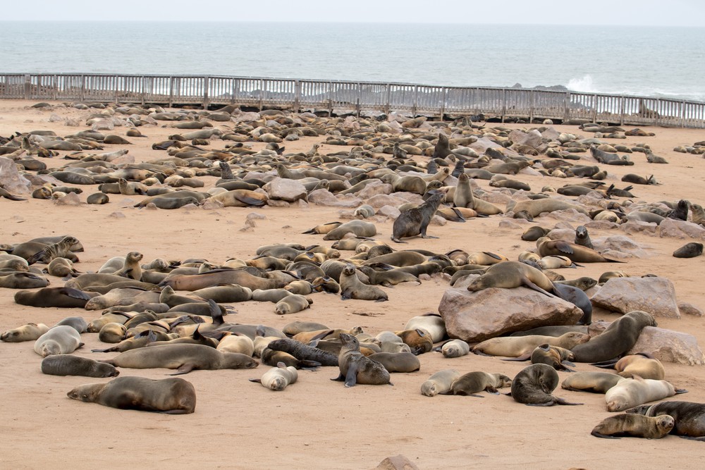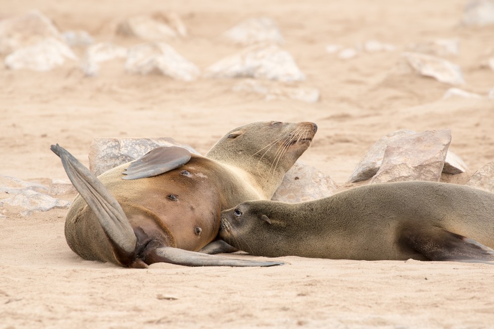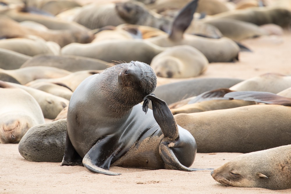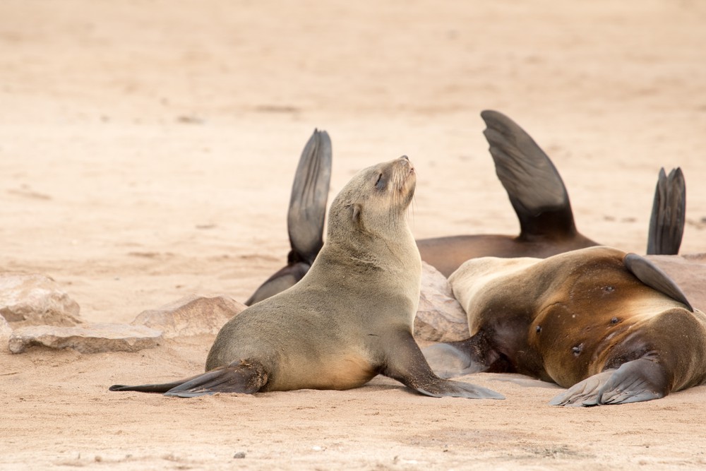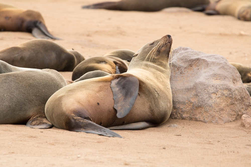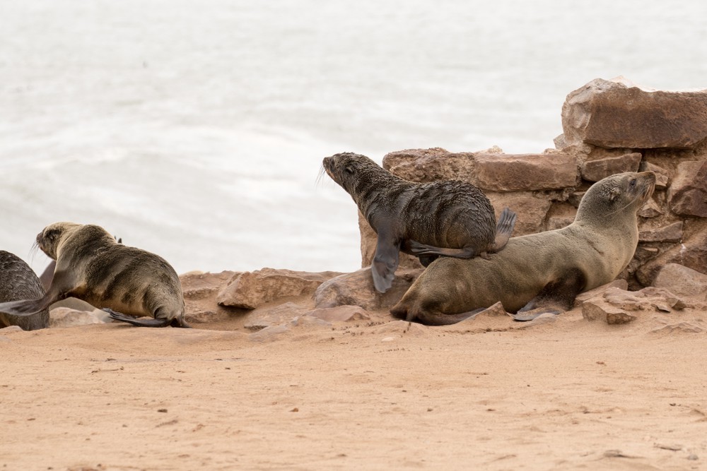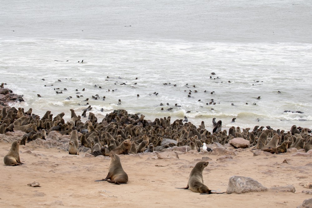 A notre arrivée au Cap Peron, on est tout de suite impressionnés par les couleurs de notre environnement. Des dunes oranges ponctuées de végétation d’un vert aux reflets bleutés ou argentés se fondent dans des plages de sable blanc. La mer arbore de jolies nuances de bleu, non pas en raison de différences de profondeur mais plutôt car de larges prairies d’herbe marine couvrent une partie des fonds marins. Depuis le sommet des dunes, on observe d’imposants groupes de cormorans ainsi que quelques dauphins venus chasser de petits bancs de poissons tout près de la plage. Les lieux paraissent magiques, presque irréels.