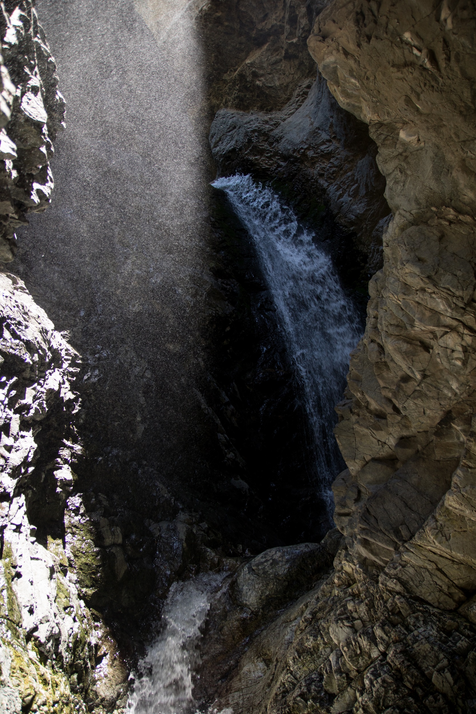 On s’avance tout doucement vers l’entrée du tunnel, avançant à pas de loup sur la roche polie par les années. Les parois du Subway cache une succession de piscines naturelles à l’eau bleutée translucide. Le chemin s’arrête ici, dans ce décor incroyable baigné de soleil. Par curiosité, et sans doute pour prolonger un peu le plaisir de la découverte, on dépose toutes les affaires aussi haut que possible avant de partir à la nage dans le dédale des derniers bassins. Alors que la fraicheur saisit instantanément chaque muscle immergé, on avance en riant bêtement, insensible à ce léger détail. Après quelques virages, une cascade d’eau glacée nous accueille dans le dernier bassin. Les plus courageux se glissent dans une étroite faille entre deux rochers pour se laisse asperger par la Keyhole Falls, dernière étape du voyage.