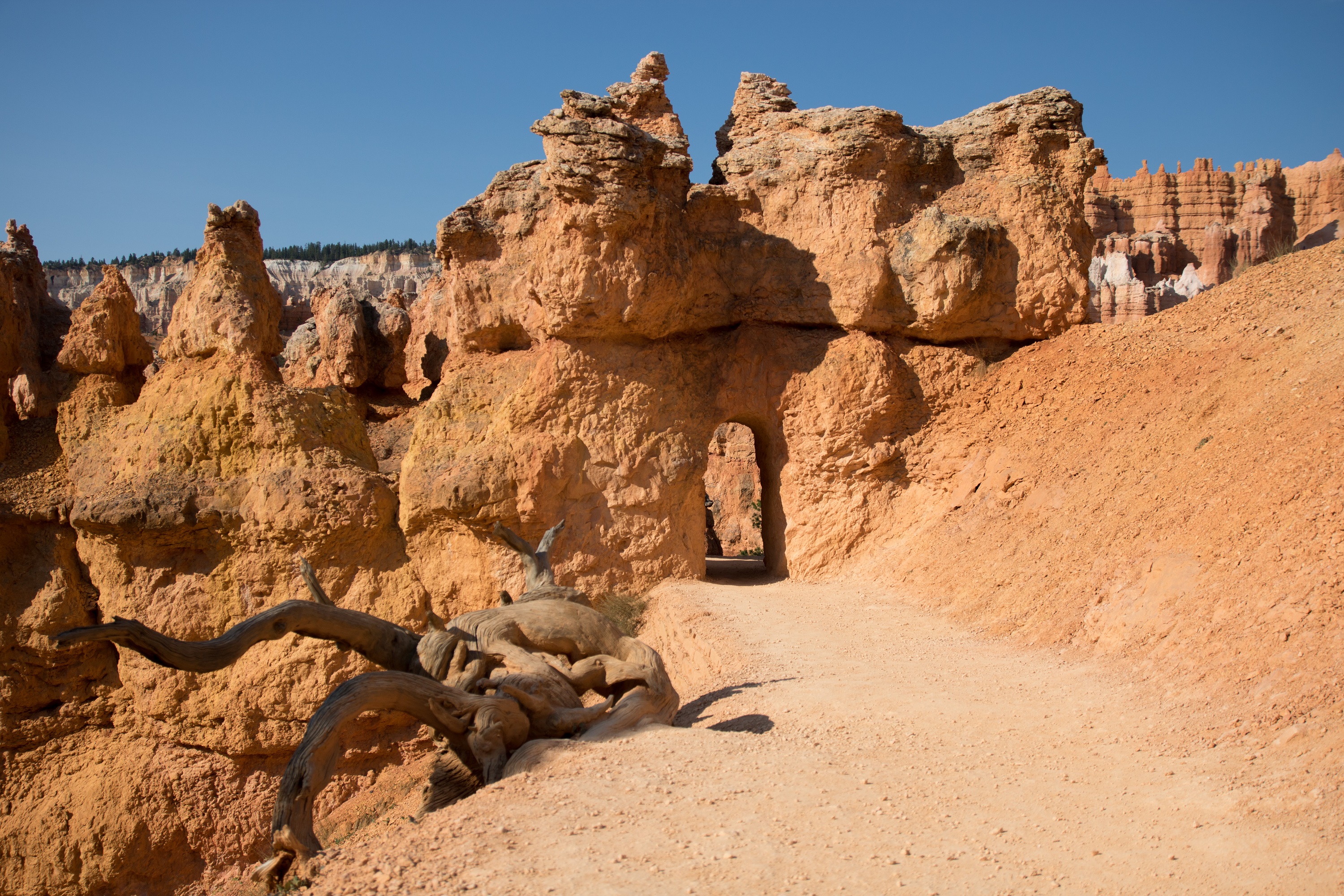 Un peu à contre cœur, on finit par rebrousser chemin, détrempés mais ravis de cette expérience insolite. Un immense tronc d’arbre posé en travers de blocs rocheux non moins imposants nous héberge le temps d’une pause déjeuner, pieds dans l’eau et seulement entourés de quelques papillons. On y passe un long moment, à la fois pour profiter de l’endroit et pour retarder l’instant où il faudra à nouveau crapahuter sous un soleil brulant…