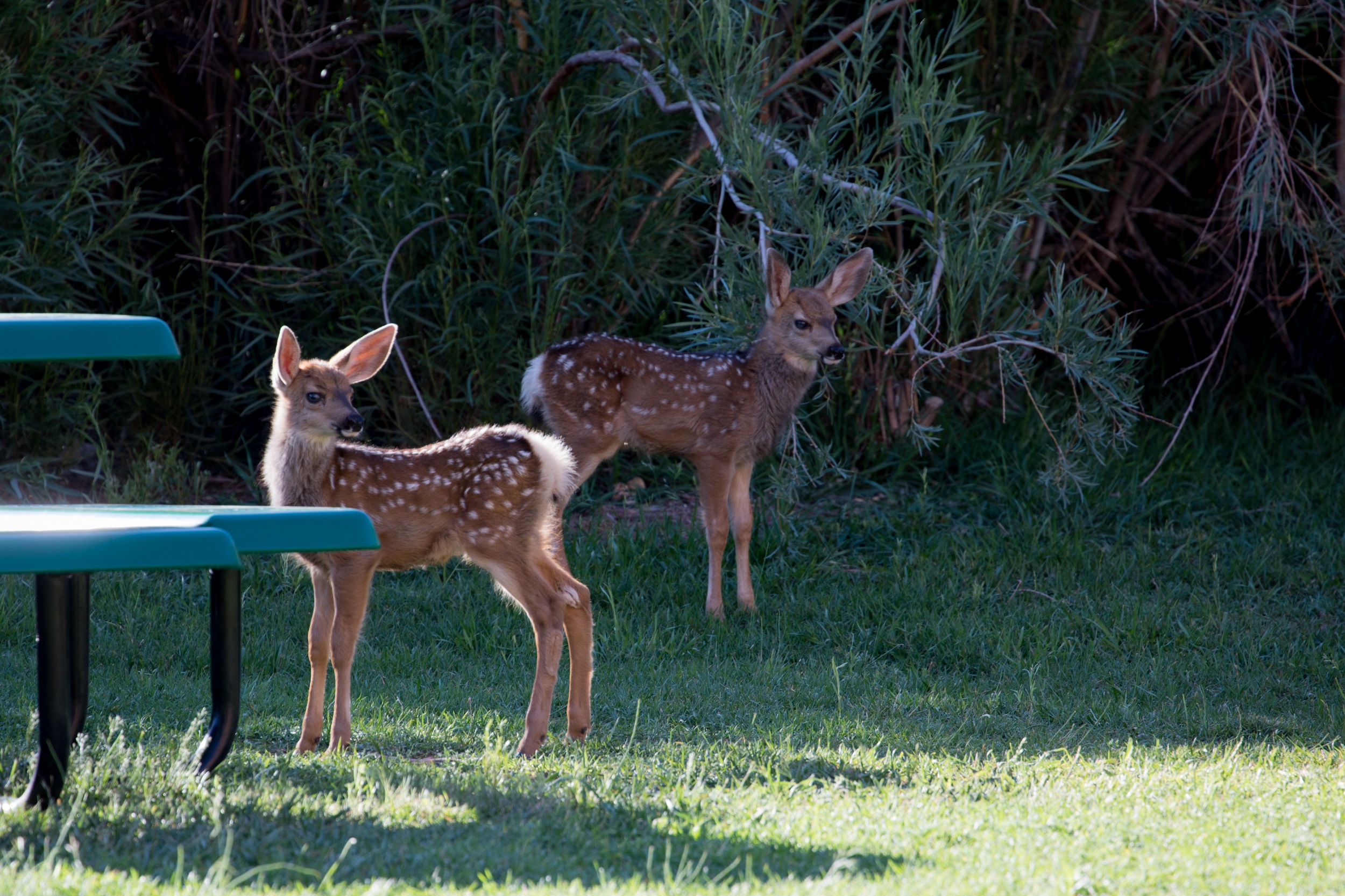 Après une courte pause à l’hôtel, juste le temps de retrouver un aspect présentable, nous partons sur la magnifique route 9 qui longe la Virgin River en direction de Springdale. Une petite table nous y attend en terrasse, survolée par de minuscules colibris. Quand quelques deers traversent la route entre deux tintements de verres, on se dit que Zion a résolument tout pour plaire.